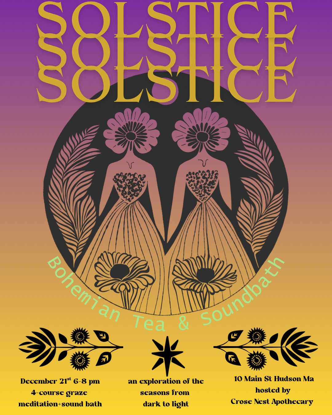 Join us for a reflection on the seasons as we journey from dark to light- this community gathering will include food, ritual, meditation and a sound bath.